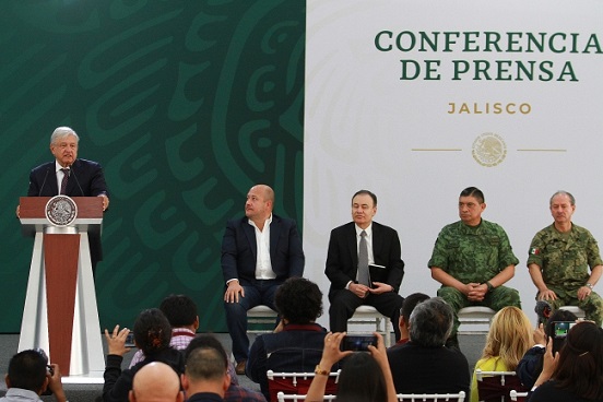 Acompañado por los secretarios de la Defensa, Luis Cresencio Sandoval; de Marina, José Rafael Ojeda Durán, y de Seguridad, Alfonso Durazo, así como el gobernador de Jalisco, Enrique Alfaro, refrendó que como comandante supremo de las Fuerzas Armadas “nunca voy a dar orden de que se reprima al pueblo del México”.