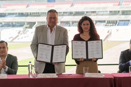 Durante la firma del Convenio entre la Secretaría del Trabajo y Previsión Social (STPS) y Televisa Radio, Televisa Regional, Club América, Box Show, Consejo Mundial de Lucha Libre, Televisa Deportes, Liga MX, Liga Femenil, Liga de Ascenso y la Federación Mexicana de Futbol, la titular de la STPS, Luisa María Alcalde, agradeció que se sumen a la propuesta del Gobierno del Presidente Andrés Manuel López Obrador, para formar de manera integral a los próximos líderes de México.