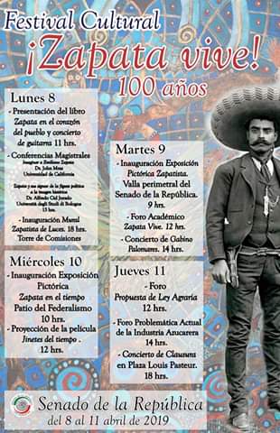 En el marco del 100 aniversario luctuoso del general Emiliano Zapata Salazar, el senador José Narro Céspedes, invita a todas las mexicanas y los mexicanos al Festival Cultural #ZapataVive #100años en el Senado de la República del 8 al 11 de abril.