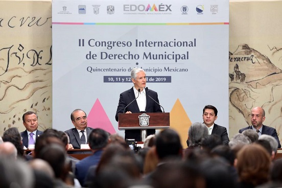“Orgullosos de nuestra tradición municipalista, los mexiquenses el día de hoy y estos tres días, celebraremos el Segundo Congreso Internacional de Derecho Municipal, que se lleva a cabo en esta ciudad, en el marco de la conmemoración de los 500 años de la fundación. Este Congreso es una oportunidad para revisar la influencia social, económica, política, jurídica e incluso cultural de este hecho de trascendencia histórica”, expresó.