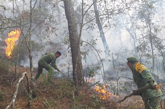 Asimismo, personal del 71 batallón de Infantería, Santiago Papasquiaro, en Durango, llevó a cabo la fase de auxilio para sofocar un incendio forestal en el municipio de Tepehuanes, Durango.