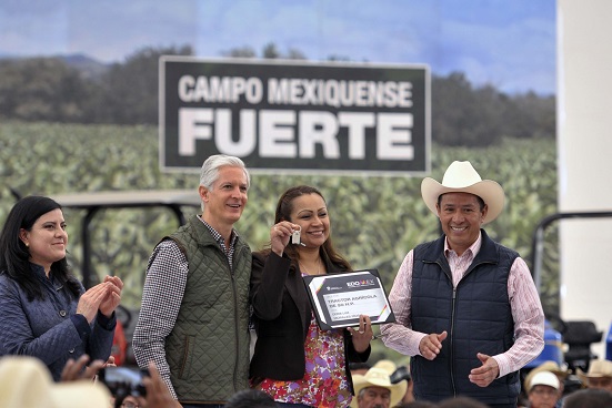 El Gobernador mexiquense indicó que su administración continuará impulsando este tipo de programas, con el objetivo de apoyar las 149 actividades agrícolas y agropecuarias que caracterizan al Estado de México, mediante el otorgamiento de equipamiento, infraestructura, semilla mejorada, fertilizante e infraestructura hidroagrícola, entre otros.