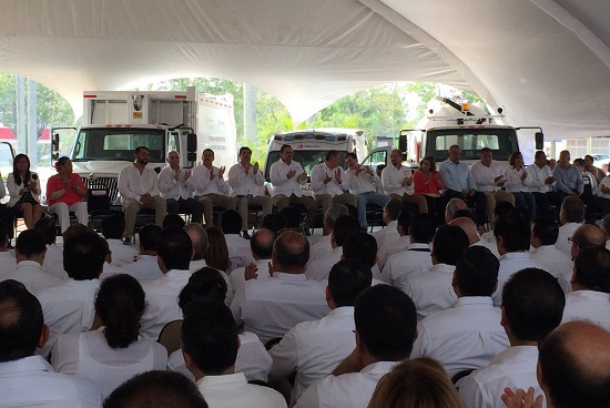 En la entrega de unidades motrices por parte de Pemex a las áreas de Salud, Seguridad y Protección Civil del gobierno estatal y municipios petroleros en la Plaza de la Revolución, destacó acciones en cinco meses en el sector como el combate al robo de combustible.