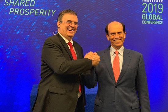 El canciller participó en la Conferencia Global 2019 del Instituto Milken, el cual es una organización que agrupa a expertos independientes en economía.