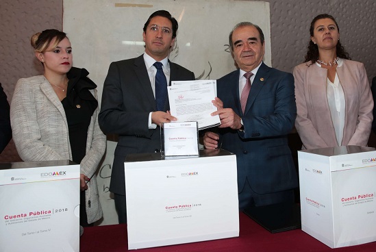 El Secretario de Finanzas, Rodrigo Jarque, entregó a la Junta de Coordinación Política de la LX Legislatura Local, la Cuenta Pública del Gobierno, Organismos Auxiliares y Autónomos del Estado de México 2018, para cumplir con lo establecido por la Constitución Estatal, que señala el 30 de abril como la fecha límite para la entrega de dicho documento.