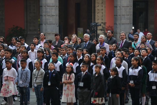 Previamente, los pequeños desayunaron en el patio central de Palacio Nacional con el presidente López Obrador y su esposa, así como los titulares de Segob y de la SEP. Les sirvieron huevo, frijoles, quesadillas de maíz azul, además de jugo, chocolate y pan.
