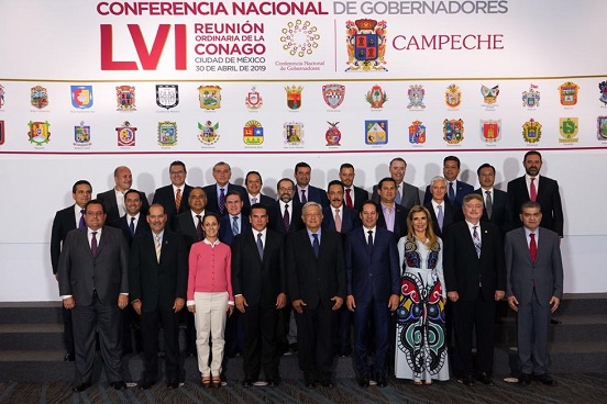 El mandatario se trasladó al cuarto piso donde se llevan a cabo los trabajos de la reunión ordinaria de gobernadores, con quienes se tomaría la fotografía oficial del encuentro.