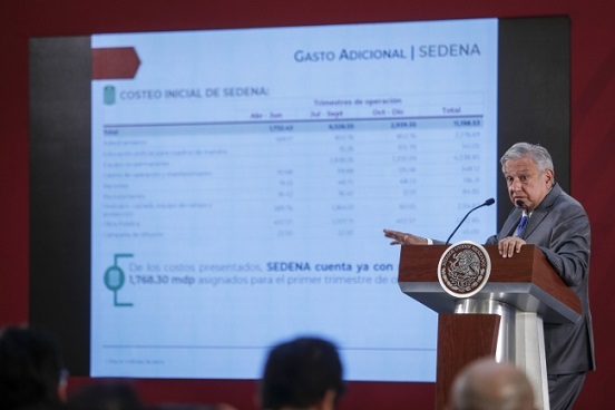 En conferencia de prensa en el Salón Tesorería del Palacio Nacional, detalló que se cuenta con un presupuesto de 16 mil millones de pesos para la operación de la Guardia Nacional en 2019, de los cuales alrededor de cuatro mil millones son para pagar sueldos a los elementos, y 12 mil millones para equipamiento y otros gastos.
