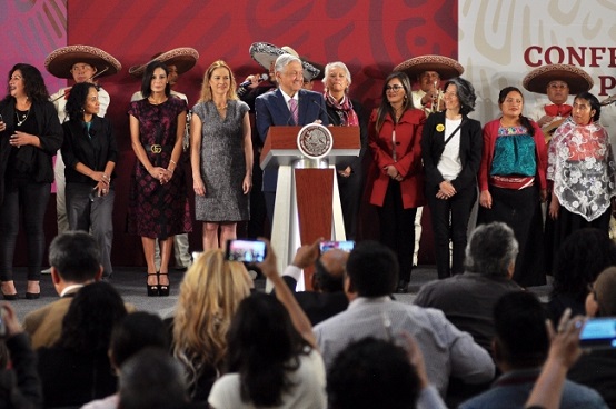 En su oportunidad, la escritora y periodista Elena Poniatowska pronunció un discurso con la mirada hacia arriba: “mira mamá, tu que estás en el cielo, míranos aquí todas estas mujeres, es la primera vez que en tantos años un presidente nos llama en una situación, en un lugar cálido, con voz sencilla.