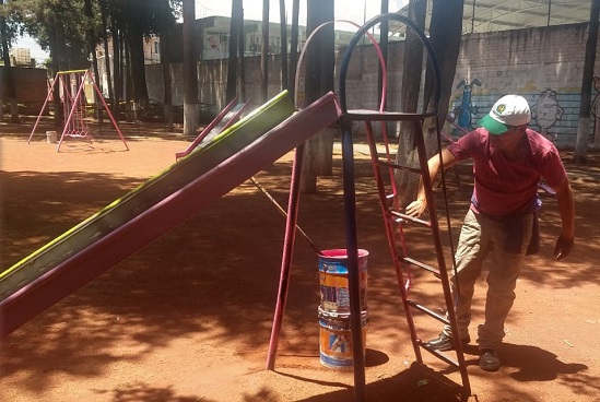 Las autoridades municipales precisaron que las labores incluyen revisión, soldadura y aplicación de pintura en resbaladillas, columpios, pasamanos y otros juegos para que los pequeños disfruten de espacios seguros.