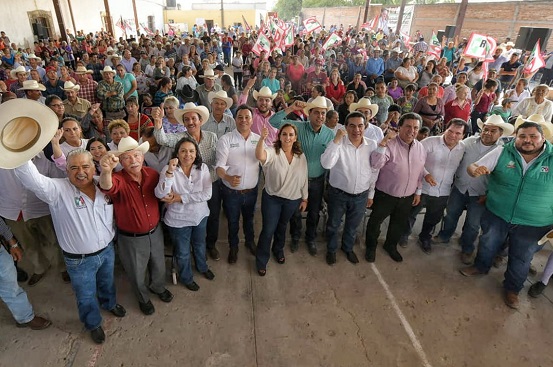 Durante el encuentro que sostuvo con campesinos y líderes de la Confederación Nacional Campesina (CNC), que preside Ismael Hernández Deras, la lideresa señaló que el actual proceso electoral que se vive en la entidad “es la oportunidad de corregir el rumbo” y tomar la decisión que haga la diferencia en la vida de todas las mujeres y hombres del campo, ya que este ha sido uno de los principales rubros, al igual que los apoyos y programas para mujeres, que han sido abandonados o eliminados por el gobierno federal.