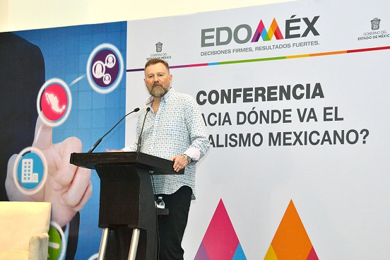 En el marco de los trabajos que organiza la Secretaría General de Gobierno, a través de la Subsecretaría de Desarrollo Político, a cargo de Jesús Izquierdo Rojas, el especialista en temas políticos y económicos, Leo Zuckermann Behar, dictó la conferencia “¿Hacia dónde va el federalismo mexicano?”.