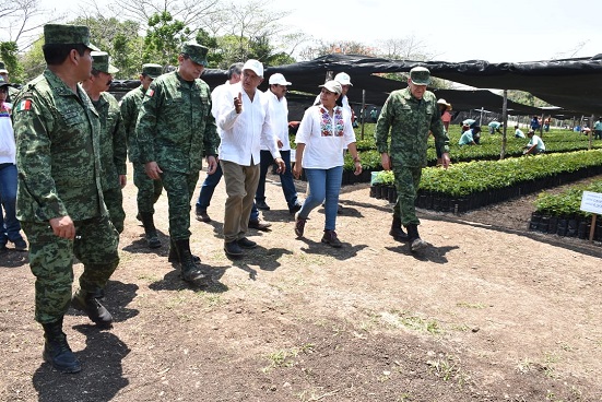 El presidente Andrés Manuel López Obrador visitó hoy, acompañado por el secretario de la Defensa Nacional, Luis Cresencio Sandoval, el Vivero Militar “Balancán», en este municipio.