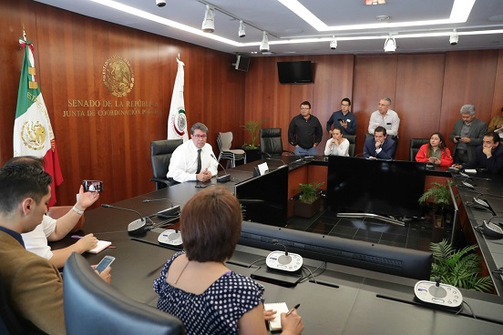 Monreal Ávila reconoció la actuación de todos los grupos parlamentarios: PAN, PRI, PRD, Movimiento Ciudadano, PT, PES y PVEM, porque todos han participado y a visto en ellos una actitud positiva, congruente, constructiva, incluso académicamente impecable y hemos redactado o modificado el documento original en más de un 70 por ciento del contenido normativo que fue enviado como documento de trabajo base por el Ejecutivo Federal.