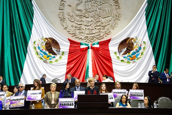 El pleno de la Cámara de Diputados avaló por unanimidad con 445 votos en favor y sin cambios, la minuta del Senado de la República de reformas constitucionales a fin de que la mitad de los cargos públicos en los tres órdenes de gobierno sean ocupados por mujeres.