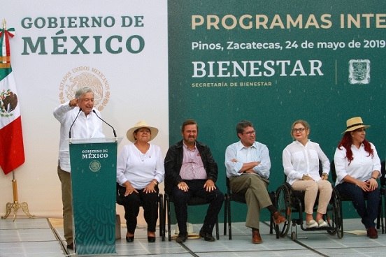 López Obrador estuvo acompañado por el gobernador Alejandro Tello, el presidente municipal, así como legisladores locales y federales, entre ellos Ricardo Monreal, líder de la bancada de Morena en el Senado.