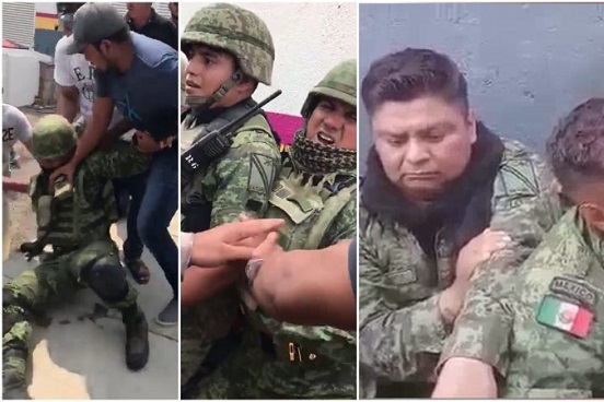 En redes sociales circularon al menos dos videos sobre el sometimiento de un grupo de militares por parte de civiles. En éstos se muestra cómo los integrantes del Ejército fueron desarmados y arrinconados, mientras uno de ellos se comunicaba con su superior para informarle la situación.