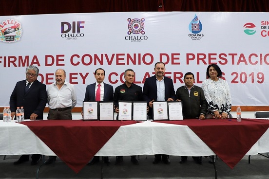 El Sindicato Único de Trabajadores de los Poderes, Municipios e Instituciones Descentralizadas del Estado de México (SUTEYM), firmó el Convenio de Prestaciones de Ley y Colaterales 2019 con el Gobierno Municipal, Sistema para el Desarrollo Integral de la Familia (DIF) y el Organismo Público Descentralizado de Agua Potable, Alcantarillado y Saneamiento (ODAPAS).