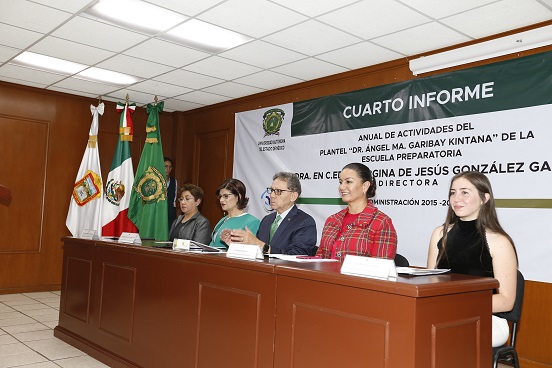La Universidad Autónoma del Estado de México materializa las esperanzas sociales de los mexiquenses, al mejorar su cobertura y servicios educativos y formar más estudiantes con mayor calidad, sostuvo el rector Alfredo Barrera Baca, al presidir el cuarto informe de actividades de la directora del Plantel “Dr. Ángel María Garibay K.” de la Escuela Preparatoria, Georgina de Jesús González García.