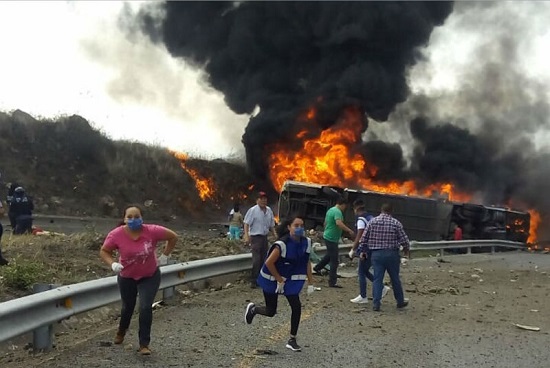 Guadalupe Osorno Maldonado, titular de la dependencia estatal, comentó que según datos de servicios periciales, que se encargó de realizar el levantamiento y las diligencias correspondientes en el punto del accidente, se levantaron 17 cuerpos de personas que venían en el autobús de pasajeros.