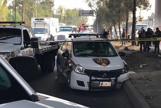 El cuerpo de la víctima quedó al interior de la unidad de seguridad, la cual se impactó contra el camellón que divide los carriles centrales y laterales de esta importante vialidad, abajo del puente que cruza hacia Arcos del Alba, en Cuautitlán Izcalli, Estado de México.