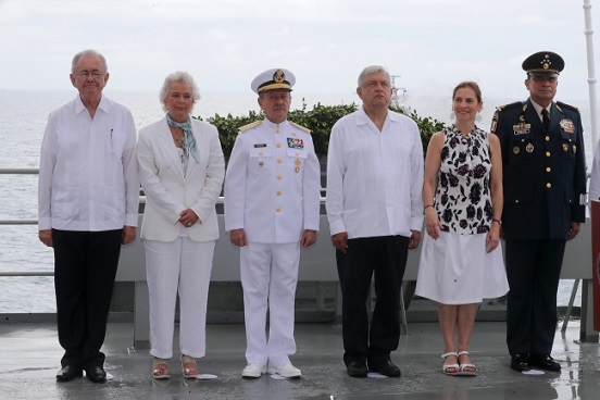 Al firmar el libro de visitantes distinguidos del buque Papaloapan, destacó: “Es un honor participar en esta ceremonia del Día de la Marina Nacional, para rendirle un homenaje eterno a quienes han perdido la vida en los mares, en las costas, cumpliendo con su deber y defendiendo a nuestra Patria”.