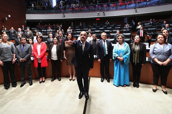 El presidente de la Mesa Directiva, Martí Batres, le tomó protesta al ahora senador con licencia, y lo felicitó. “Conoce el ambiente de las aduanas y del comercio internacional, y en todo momento buscará el beneficio de nuestra patria y de los mexicanos”, comentó.