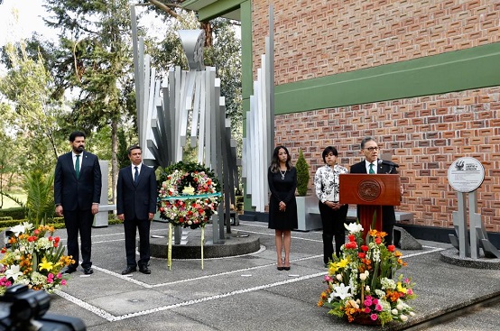 Luego de colocar ofrenda floral y montar guardia en el monumento a la Libertad de Expresión, acompañado del director General de Comunicación Universitaria de la UAEM, Gastón Pedraza Muñoz, y la integrante del Comité Ejecutivo de la Asociación de Periodistas del Valle de Toluca, Itzel Jazmín Rangel Castelán, expresó el apoyo de la institución educativa mexiquense a la política internacional del presidente Andrés Manuel López Obrador y a su convocatoria nacional en Tijuana, “en defensa de la soberanía y dignidad de los mexicanos”.