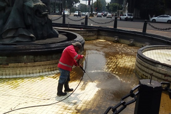 También se han llevado a cabo labores de limpieza en las fuentes de las plazas España, de los Mártires, Ángel María Garibay y del Andador Constitución, que son algunas de las 54 existentes en el municipio y que son parte de la historia no sólo de Toluca sino del país; por ejemplo, la ubicada en la glorieta de Paseo Colón y Venustiano Carranza, fue construida para conmemorar el Centenario de la Independencia.