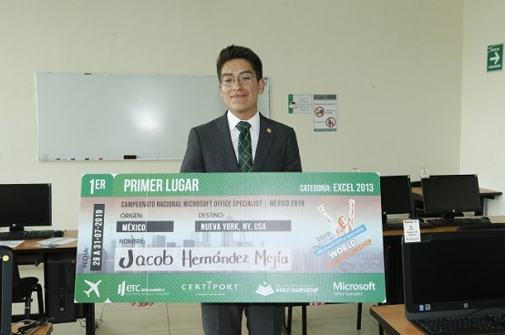 Jacob Hernández Mejía, estudiante del cuarto semestre de la Licenciatura en Actuaría de la Facultad de Economía de la Universidad Autónoma del Estado de México, ganó el primer lugar, en la categoría Excel 2013, del Campeonato Nacional de Microsoft Office Specialist 2019, que se realizó en Zapopan, Jalisco.