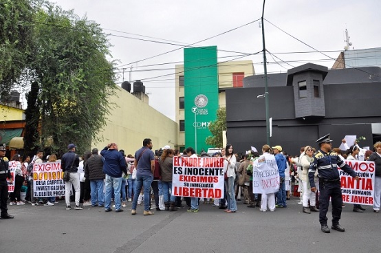 Afuera del Tribunal Superior de Justicia de la Ciudad de México, los feligreses del sacerdote, un grupo de casi 200 personas, permanecieron en una jornada de oración las casi ocho horas que duró la diligencia.