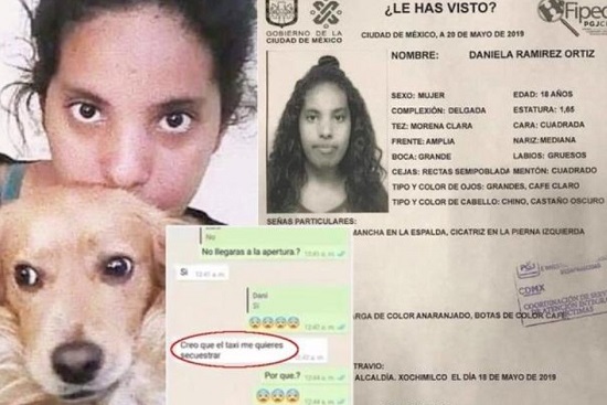 Daniela desapareció el pasado 19 de mayo, cuando abordó un taxi luego de salir de su trabajo en una pizzería, ubicada en la Colonia Paseos del Sur, en Xochimilco. Al percatarse que el taxista se desviaba de su camino, pidió ayuda a un amigo, mediante mensajes de Whatsapp. La joven le dijo a su madre que acudiría a una fiesta.