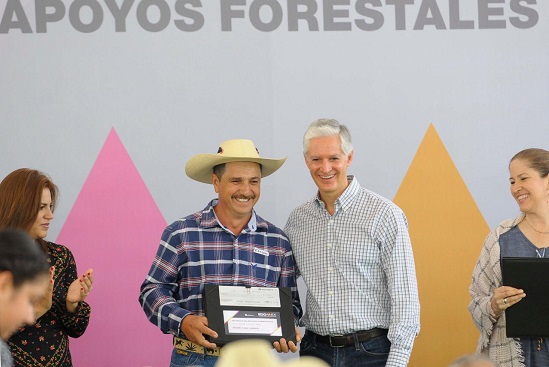 Luego de entregar apoyos forestales, Alfredo Del Mazo detalló que a través del programa de Pagos por servicios ambientales hidrológicos, quienes cuidan y conservan de los bosques mexiquenses reciben un apoyo de mil 500 pesos por hectárea.