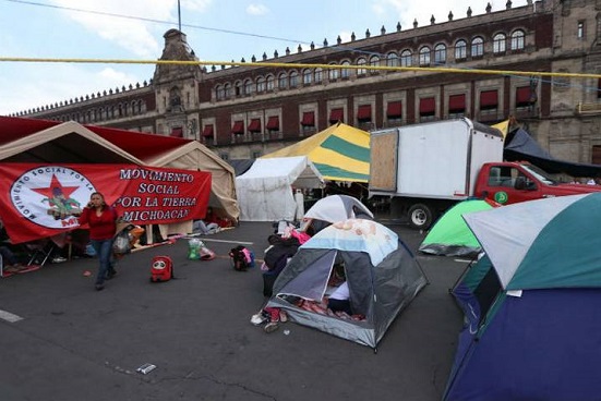 Durante un recorrido realizado por Notimex, se apreció que parte del circuito de la Plaza de la Constitución, frente al edificio de Gobierno de la Ciudad de México y José María Pino Suárez, ya están completamente ocupados por carpas y camiones.