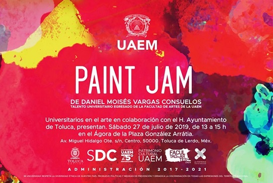 Enmarcada en las actividades destinadas a la creación y difusión del arte en la capital, la Dirección de Cultura de Toluca y la Dirección de Patrimonio Cultural de la UAEMéx invitan al Paint Jam el sábado 27 de julio, de 13:00 a 15:00 horas, en el Ágora de la Plaza González Arratia.