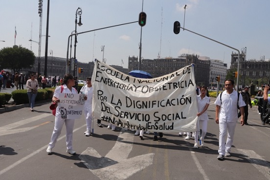También les han quitado becas de 300 pesos, muy importantes para hacer su servicio, según explicó Brenda, quien forma parte del grupo de trabajadores de la salud que se manifiesta en el Zócalo capitalino en demanda de mejoras laborales.