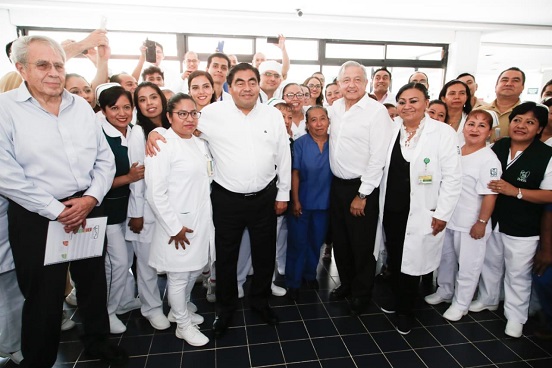 Reiteró su compromiso de que no falten médicos, medicinas, que mejoren las instalaciones y de regularizar a todos los trabajadores de la salud, pues no habrá eventuales, ni trabajadores por contrato, por honorarios.