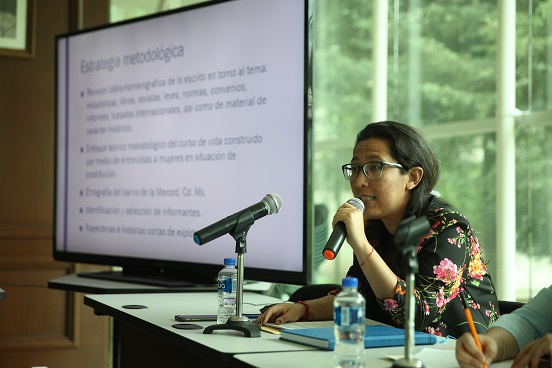 En la Facultad de Ciencias Políticas y Sociales de la UAEM, la experta compartió los resultados de la investigación que realizó en el barrio de La Merced, en la Ciudad de México, donde dio seguimiento y entrevistó a mujeres sobrevivientes de trata de personas con fines de explotación sexual en contextos de prostitución.