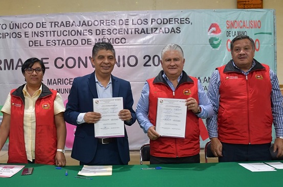El Sindicato Único de Trabajadores de los Poderes, Municipios e Instituciones Descentralizadas del Estado de México (SUTEYM) firmó el Convenio de Sueldo y Prestaciones con el municipio de Ixtapaluca, documento que beneficiará con incrementos escalonados del 4, 7 y 9 por ciento a los 227 trabajadores del ayuntamiento, organismo de agua y DIF.