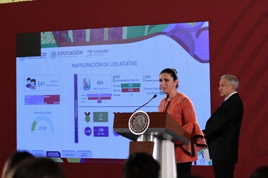 En la conferencia de prensa matutina, Guevara presentó un balance de la justa panamericana, en la que México obtuvo 136 medallas (37 de oro, 36 de plata y 63 de bronce), agradeció el respaldo del gobierno federal y entregó a López Obrador una medalla y una figura conmemorativa.