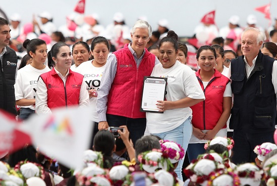 Durante la entrega de tarjetas y constancias de capacitación del programa Salario Rosa, Alfredo Del Mazo señaló que este tipo de programas permiten apoyar a los mexiquenses que más lo necesitan, así como para reducir los índices de pobreza.