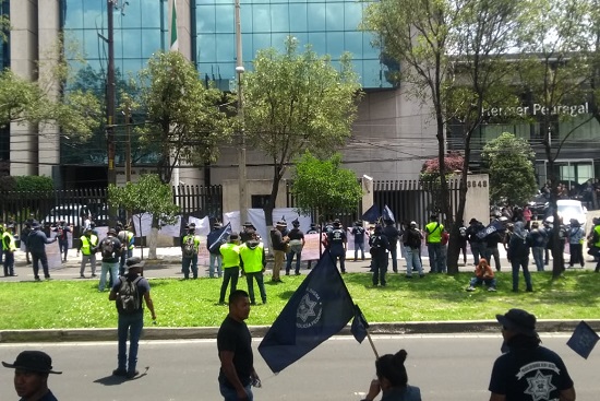 Elementos de la Policía Federal mantienen bloqueados ambos sentidos de Periférico Sur, a la altura de la Torre Pedregal, en protesta contra su integración a la Guardia Nacional.