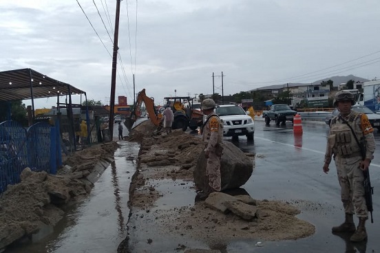 De acuerdo con la cuenta de Twitter de la Sedena, los militares llevan a cabo trabajos de remoción de escombros, desazolve de coladeras, auxilio de vehículos varados y labores de limpieza en las viviendas afectadas en Comondú.