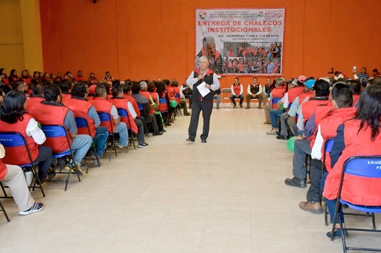 El Secretario General del SUTEYM, Herminio Cahue Calderón, encabezó la entrega de chalecos institucionales en beneficio de los 573 agremiados que integran la sección en Chimalhuacán; acto en el que fue acompañado por Ismael Mota González, Secretario General del Comité Ejecutivo Seccional del municipio.