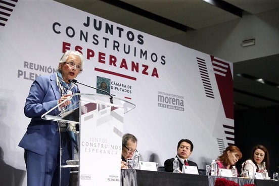 En su discurso a los diputados de Morena, la funcionaria calificó su labor legislativa como titanica.