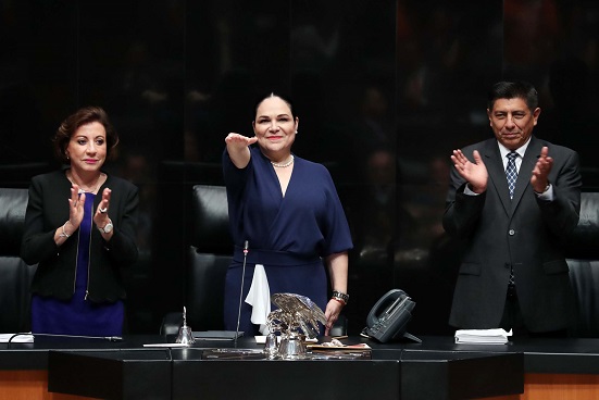 Además de agradecer su designación, dijo que es un honor y una gran responsabilidad, es un día histórico para ella, y para la cámara alta ya que en un ejercicio abierto y democrático se abre la puerta para nuestro país pues la participación de las mujeres es un hecho.