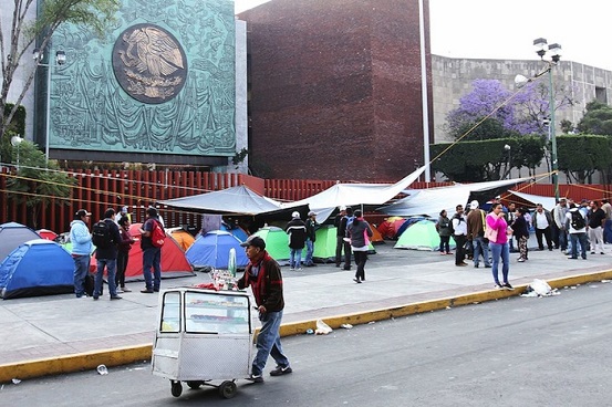 Integrantes de la Coordinadora Nacional de Trabajadores de la Educación (CNTE) de la Sección 22 del estado de Oaxaca se manifiestan en las afueras de la Cámara de Diputados, en protesta contra las leyes secundarias educativas.