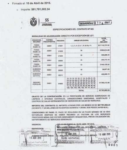 Este segundo contrato con las autoridades de Veracruz es por 159 millones 809 mil 395 pesos y nuevamente la mayor parte de los recursos procede de la partida del Seguro Popular.