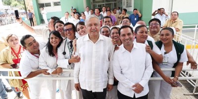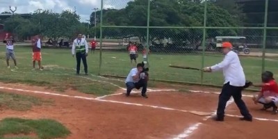 López Obrador juega softball con habitantes de Muna, Yucatán