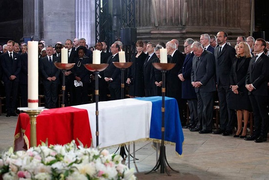 Después de un servicio familiar privado y de que las fuerzas armadas francesas rindieron honores al expresidente en el Palacio los Inválidos, el ataúd fue trasladado al templo para una ceremonia conmemorativa, mientras que en las escuelas y oficinas públicas se guardó un minuto de silencio en su honor.